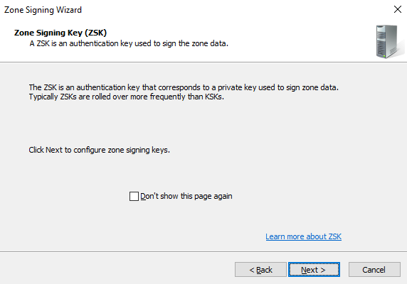 On the Zone Signing Key (ZSK) interface, click Next.