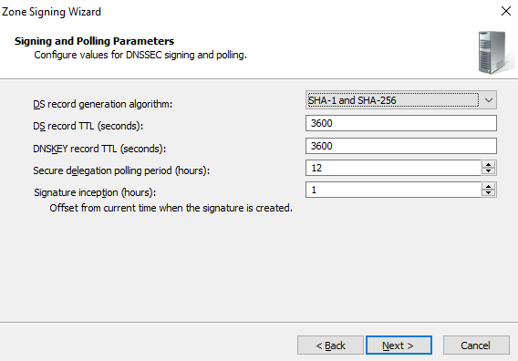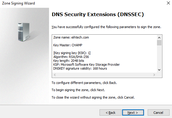 On the DNS Security Extensions (DNSSEC) interface, click Next.